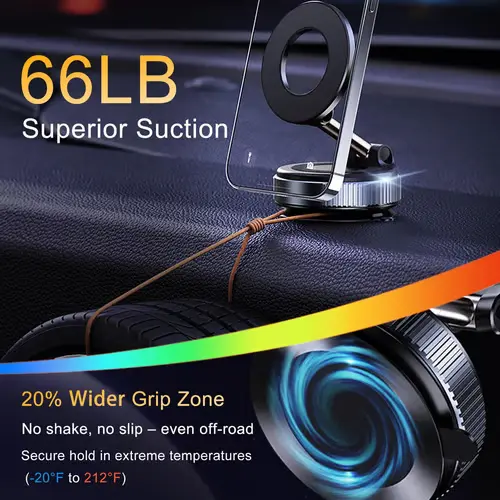 نظام شفط قوي يثبت الحامل على أي سطح أملس بسهولة ودون الحاجة للّصق.